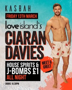 Love Island’s winner Ciaran Davies is coming to Kasbah for an exclusive meet & greet