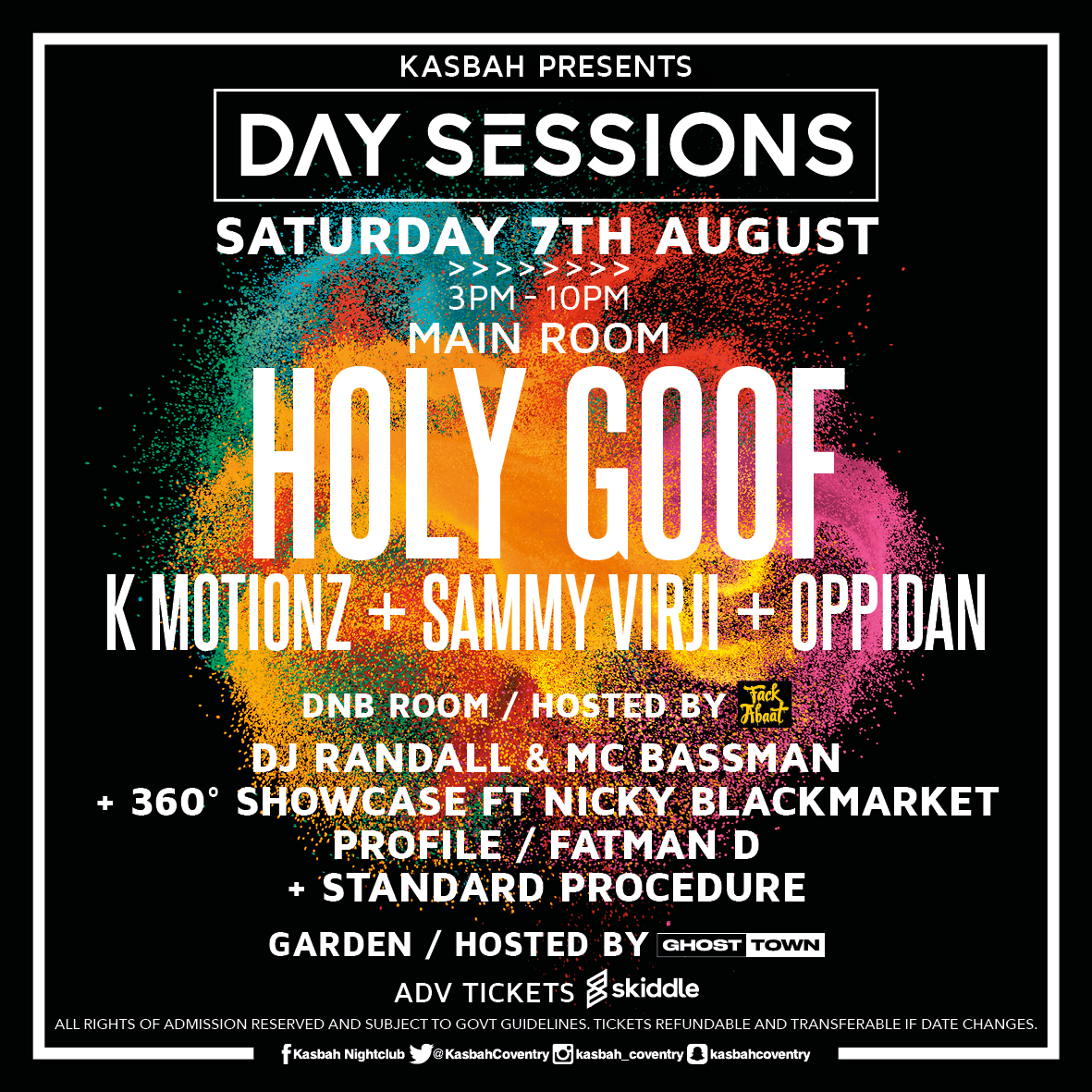 Day Sessions makes a huge return on Saturday 7th August 2021 with HOLY GOOF, K MOTIONZ, DJ RANDALL & many more 💥💯🔥